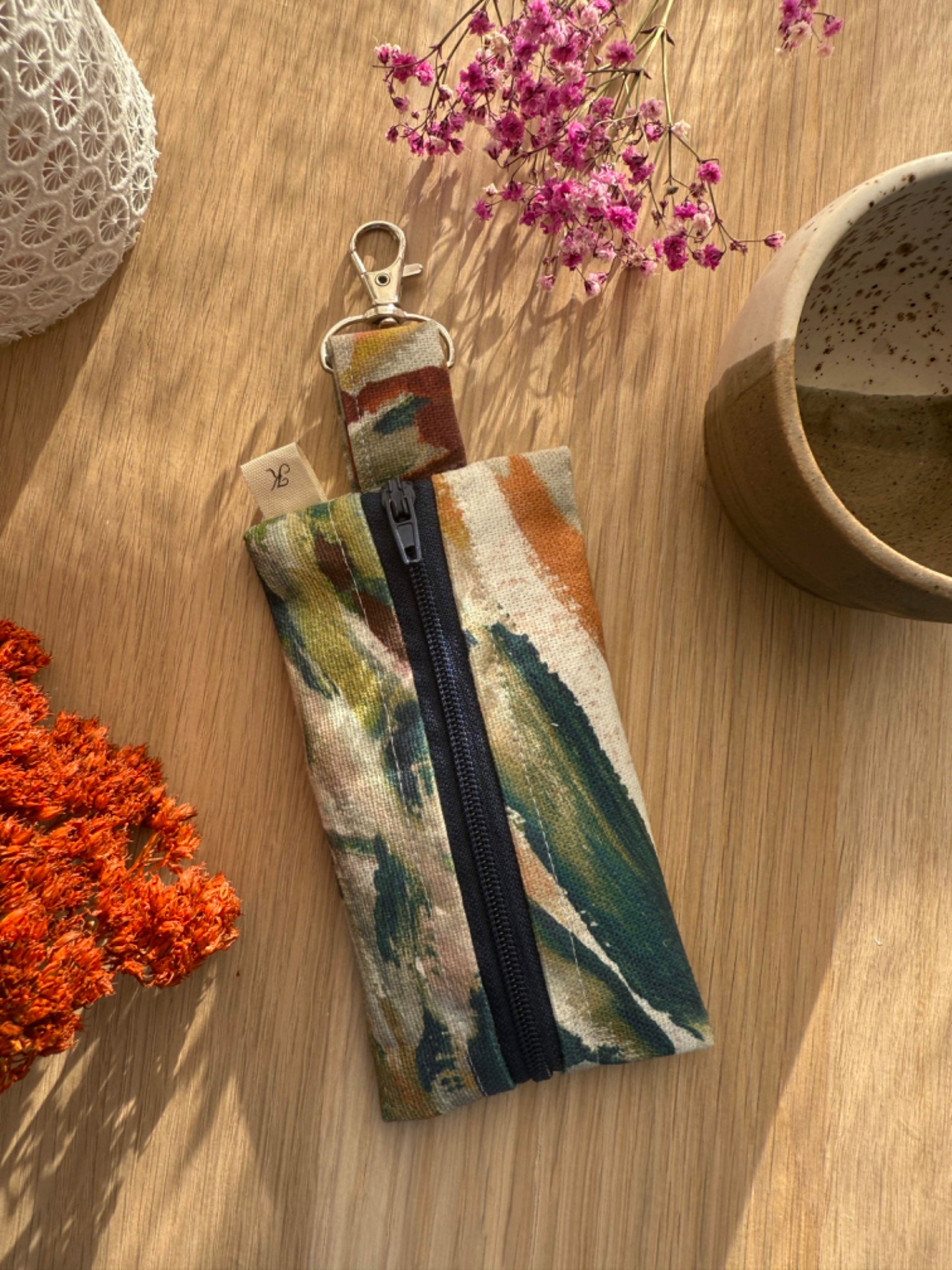 Ce porte monnaie a été conçu pour t'accompagner lors d'un voyage. Tu pourras y ranger le passeport et autres documents. J'ai également cousu deux compartiments pour les cartes ainsi qu'une poche avec une fermeture éclair pour la petite monnaie ou autres. Matière: Tissu coton Dimension: 18.5 x 11.5