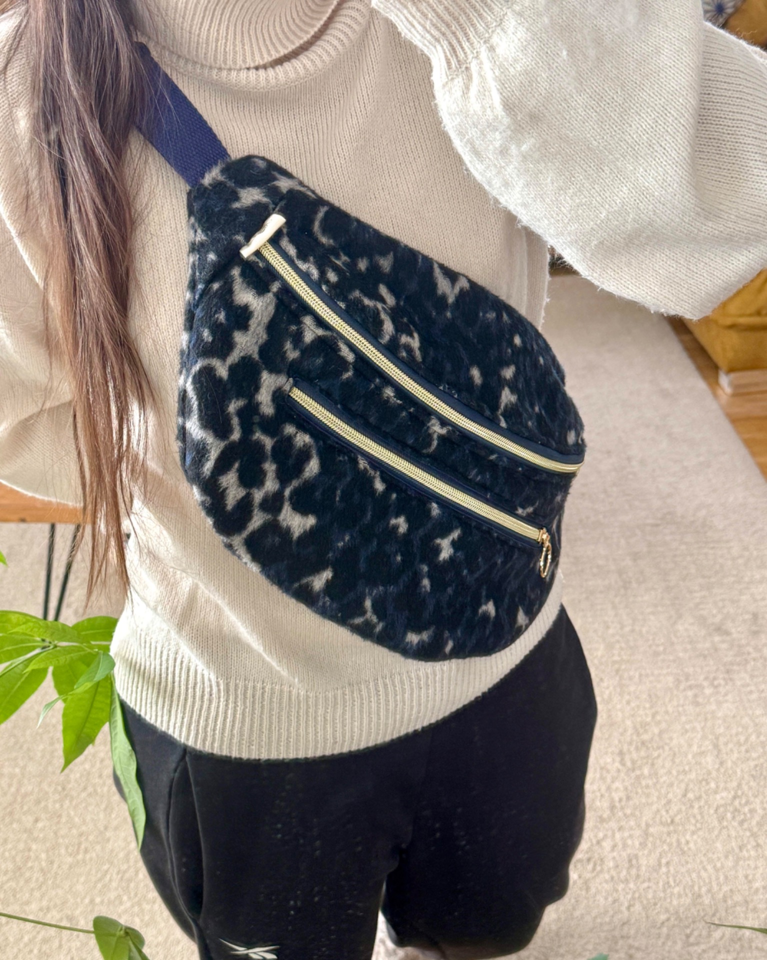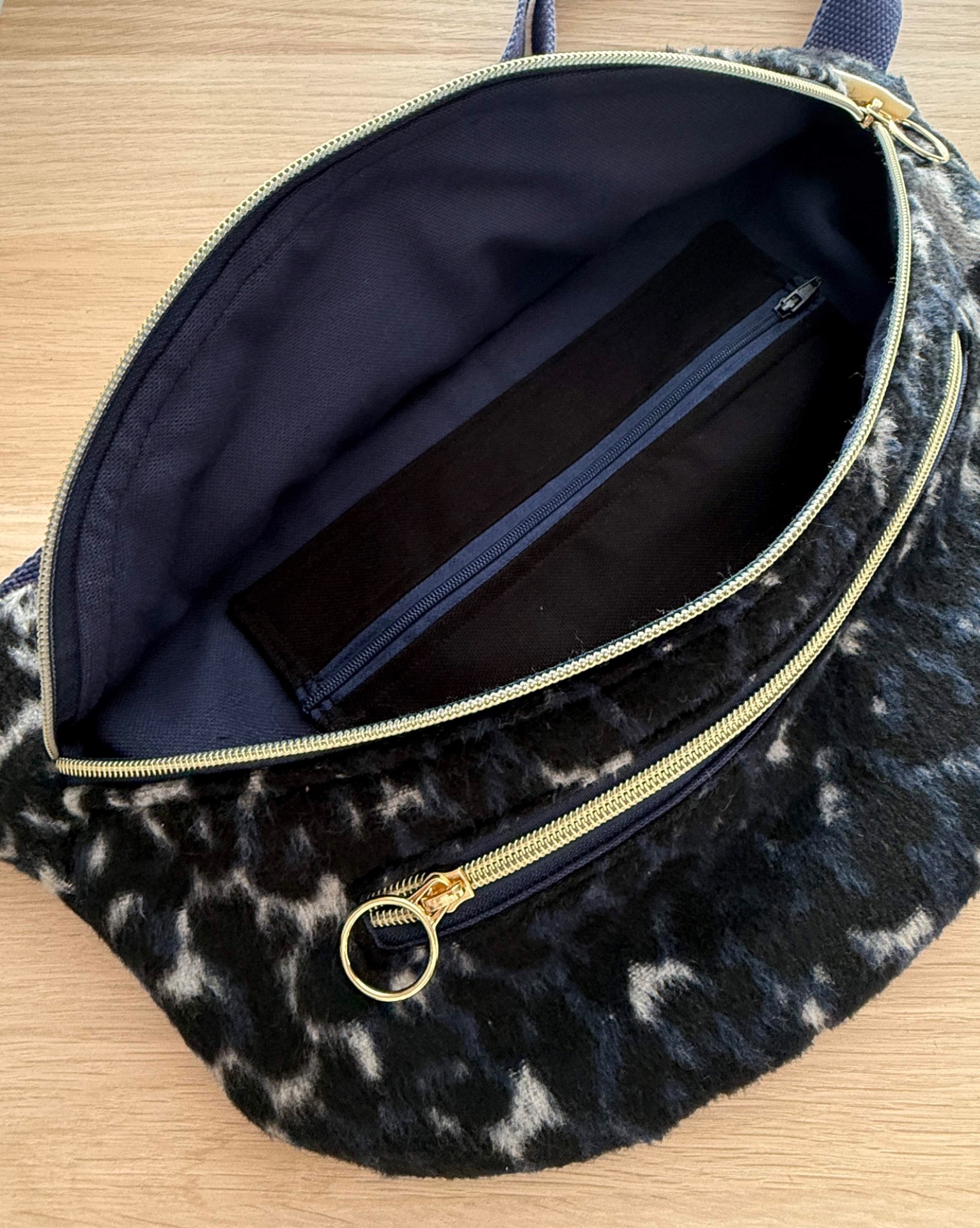 Cette version que j'ai créée est idéale pour un usage quotidien. Elle dispose de 2 poches : une à l'extérieur et une à l'intérieur. Chaque pièce est unique, doublée d'un tissu qui s'adapte à l'humeur du jour !