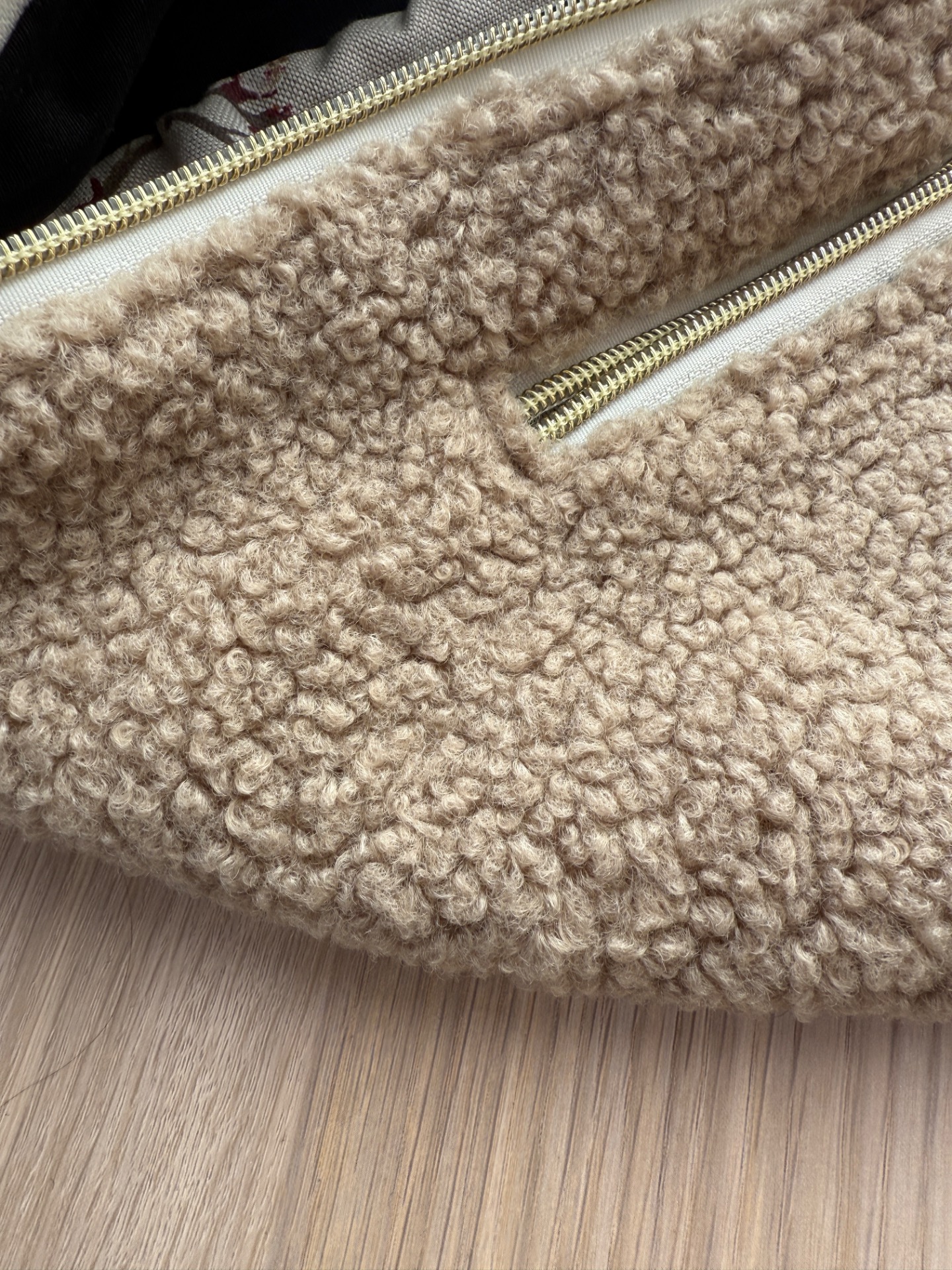 Tissu: Pour l'extérieure, peluche Teddy. Intérieur coton épais
