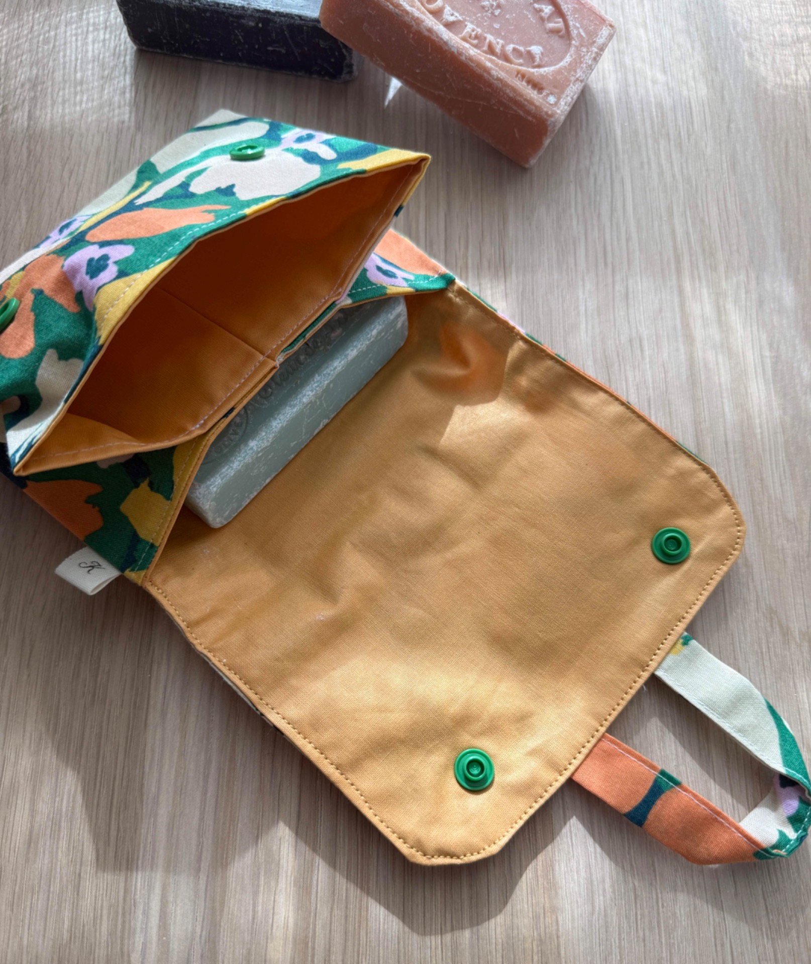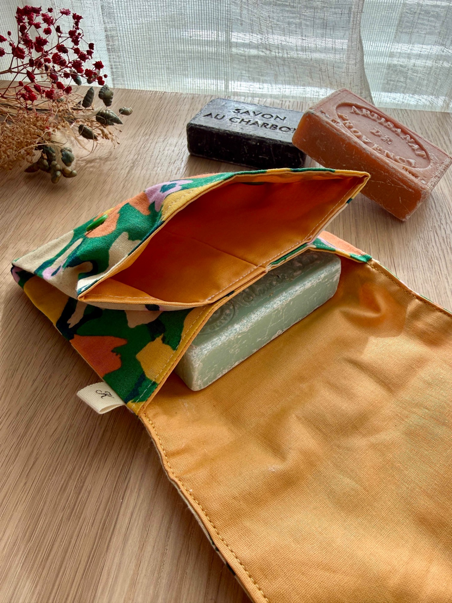 Astuce: Si tu souhaites garder ton savon dans la pochette pour une longue durée, veille à ce que le savon soit complètement sec, sinon il risque de ramollir.