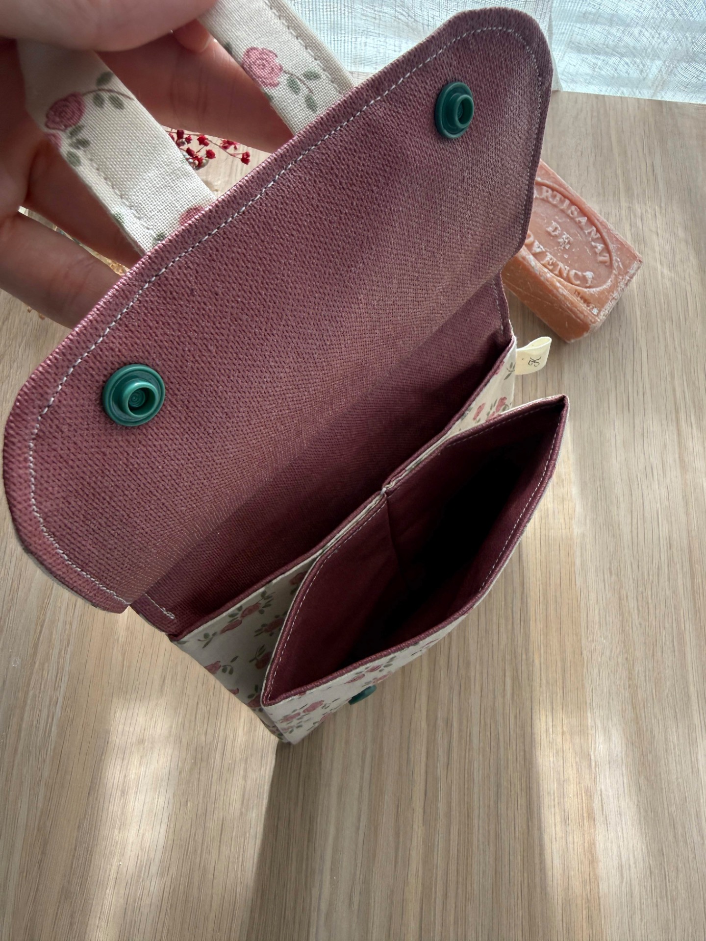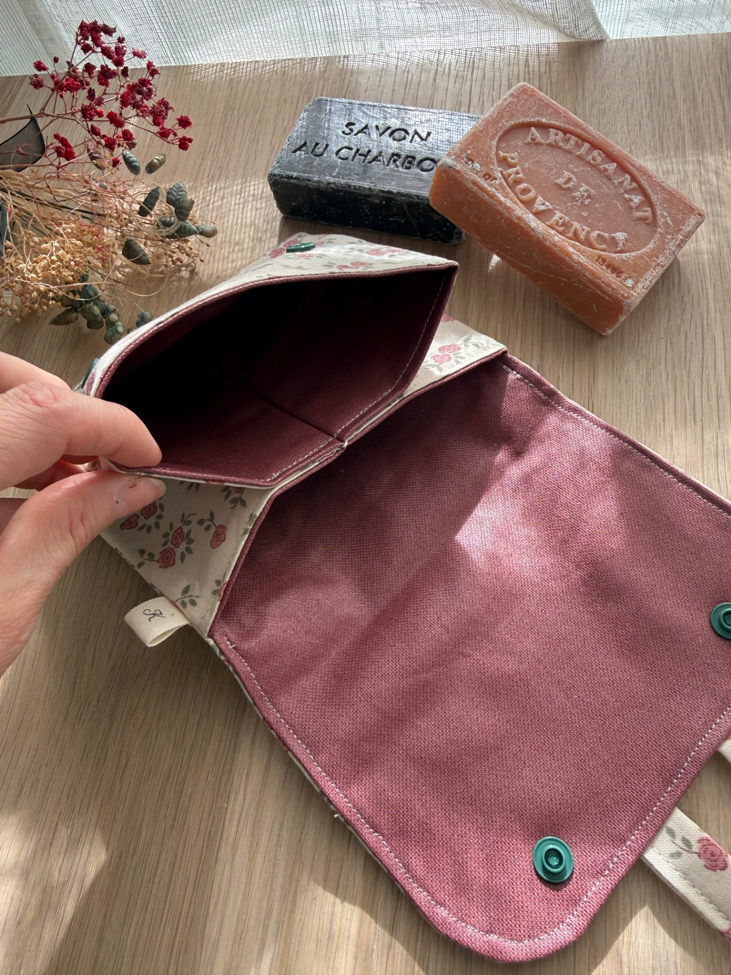 Astuce: Si tu souhaites garder ton savon dans la pochette pour une longue durée, veille à ce que le savon soit complètement sec, sinon il risque de ramollir.